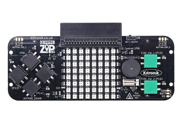 The Kitronik :GAME ZIP 64 is the ultimate retro gaming accessory for the BBC microbit. It has been designed to be an all in one hand held gaming platform, which also includes a built in, 64 (8x8) individually addressable full colour ZIP LED, screen.